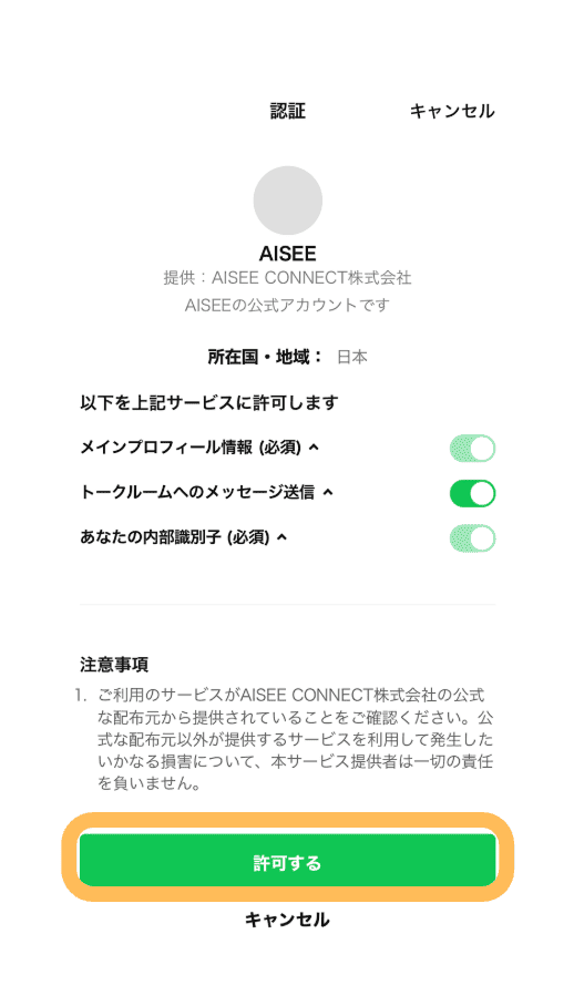 - STEP.2LINEにアクセス【許可する】をタップします。