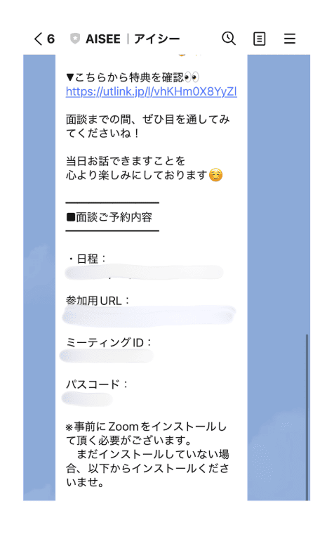 - STEP.6すぐに予約が完了です。特典と一緒に面談当日のZOOMのURLも届きます。
