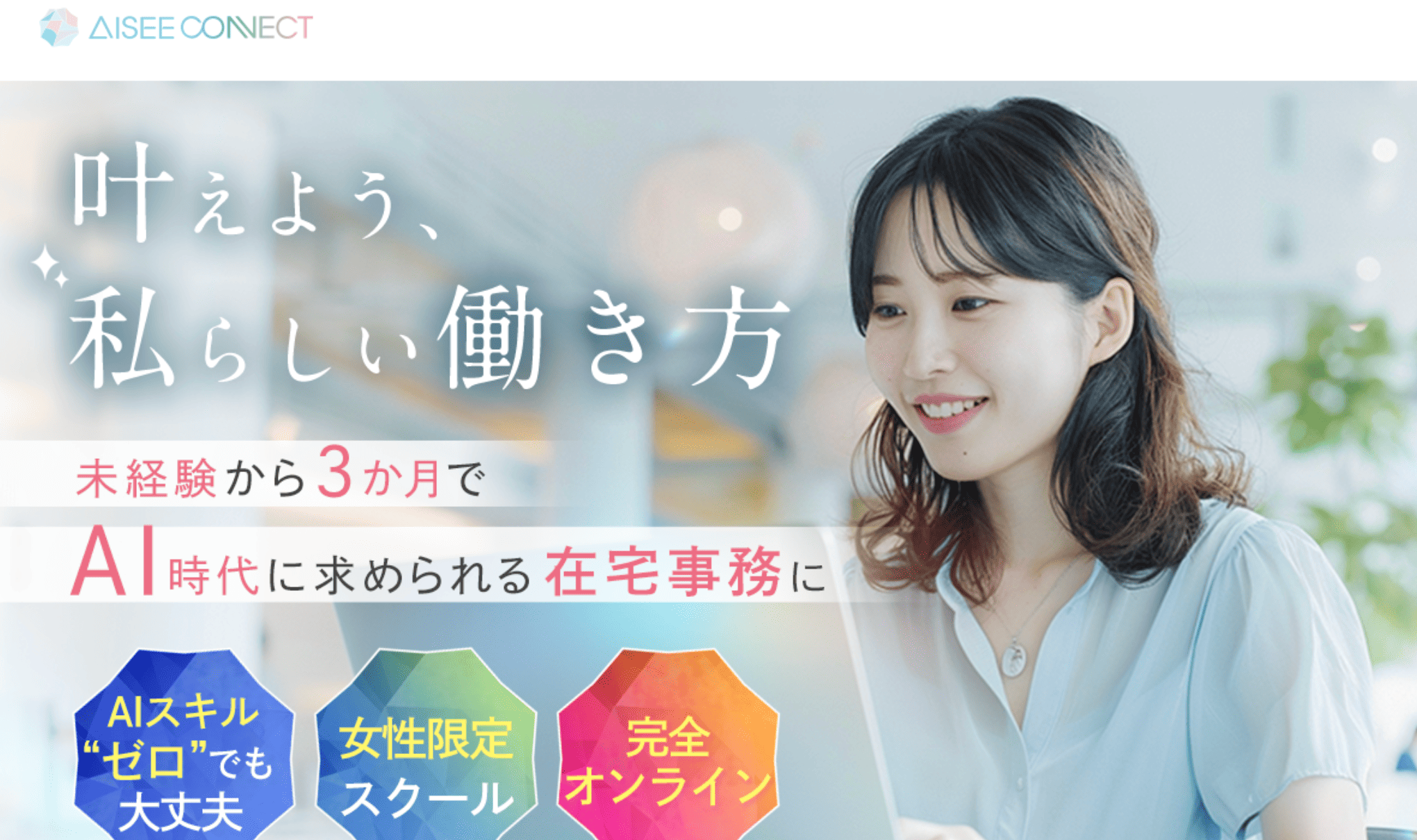 AISEEは、AISEE CONNECT株式会社が2025年12月より提供を開始した国内初の女性限定AI事務スクールです。