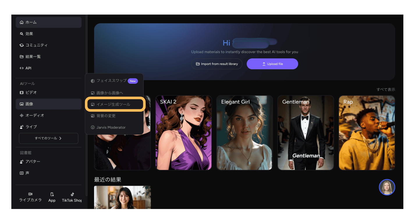 AKOOLにはフェイススワップだけでなく、テキストや画像からAI画像を生成できる「Image Generator」機能が搭載されています。