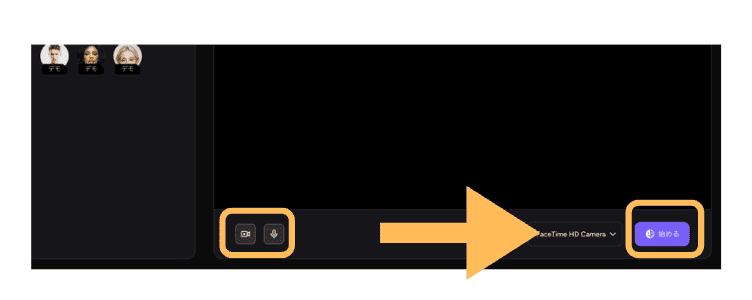 - STEP.3マイクとカメラをオンにした後【始める】をクリックしましょう。