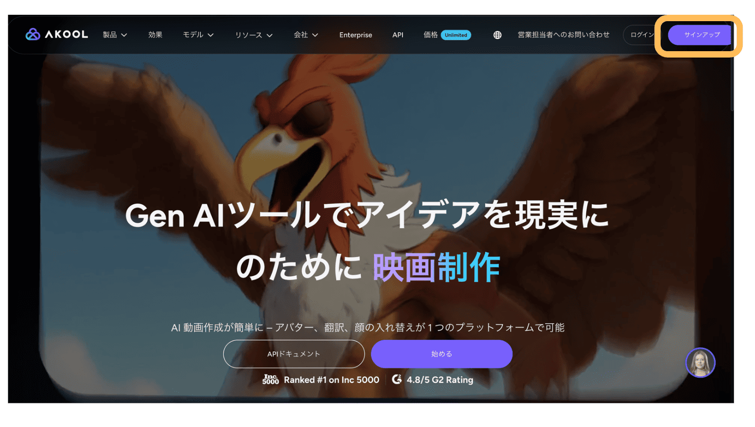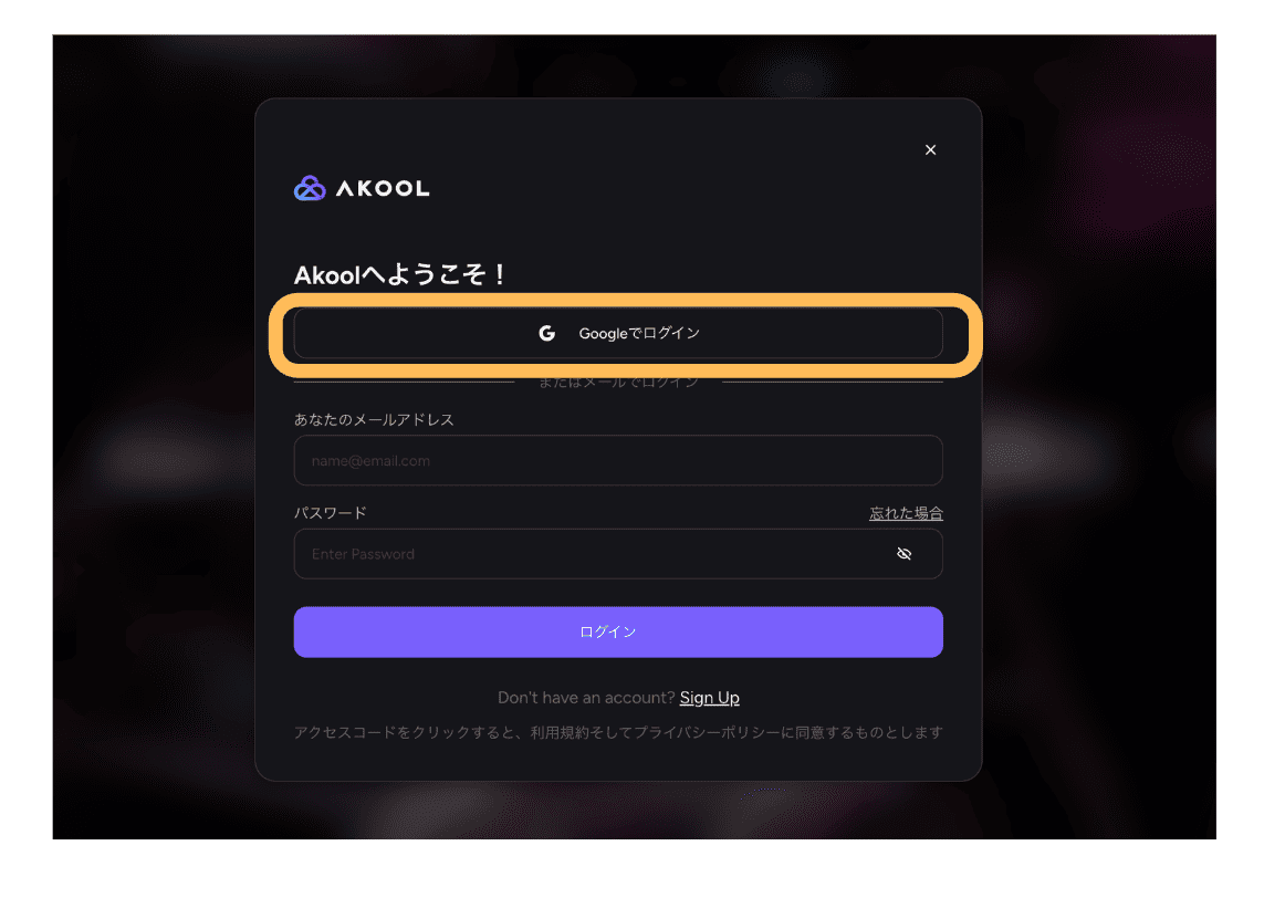 - STEP.1まず、AKOOLの公式サイトにアクセスして、「サインアップ」をクリックします。
