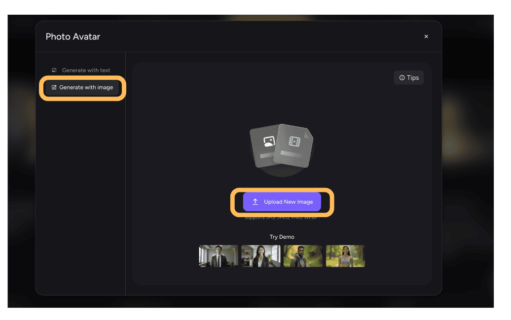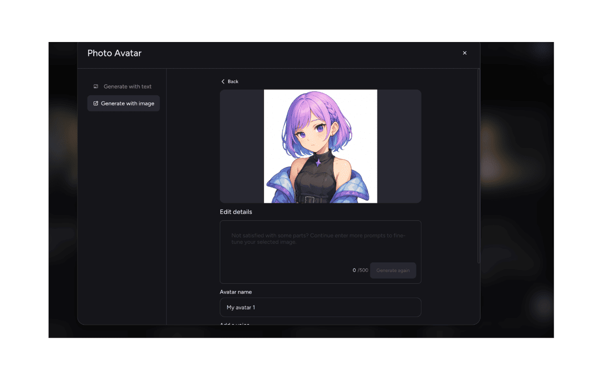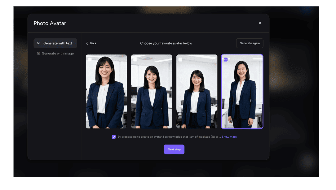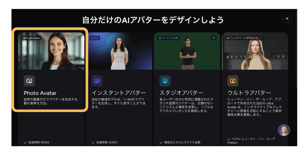 - STEP.1同じように【PhotoAvatar】を選択します。