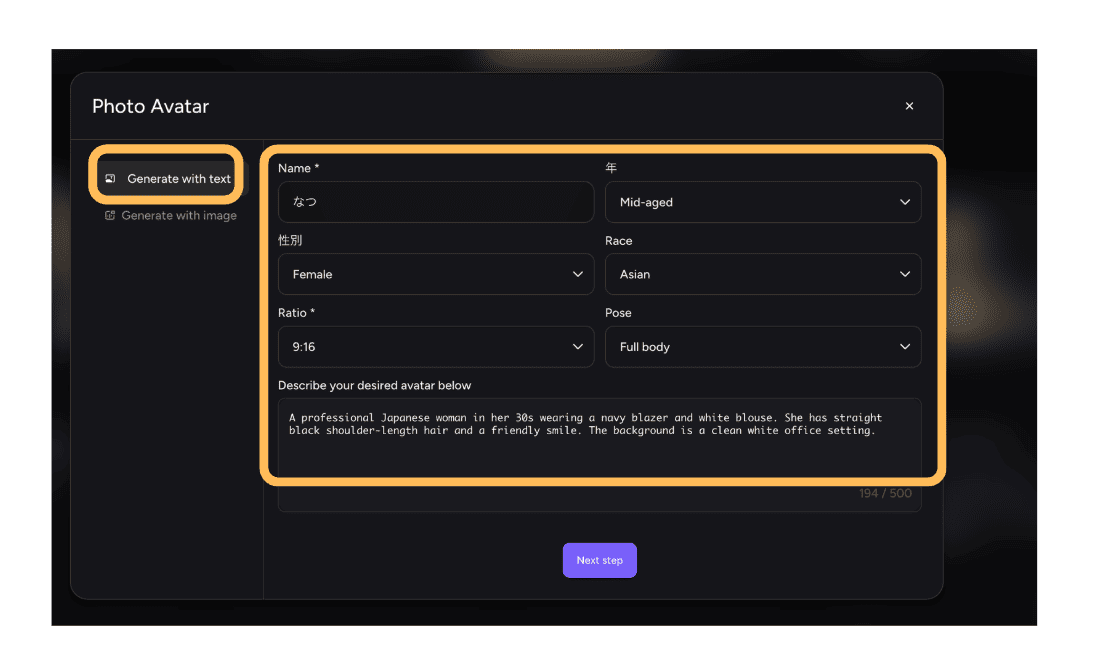 - テキスト入力だけでAIアバター動画を生成できる