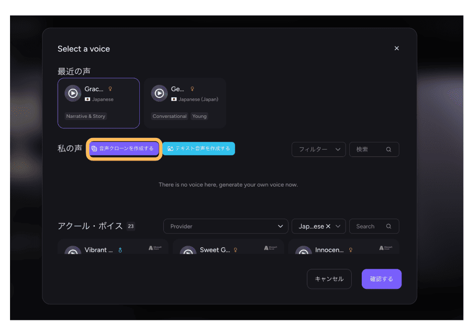 - STEP.2【音声クローンを作成する】を選択します。