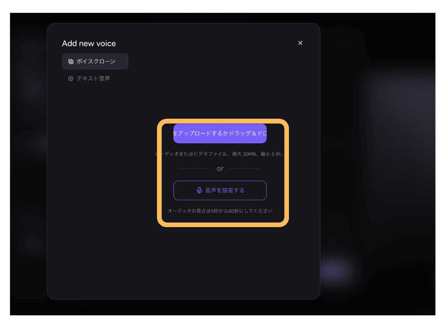 - STEP.3事前に録音してある音声データかこの場で録音をして声の情報をアップロードします。