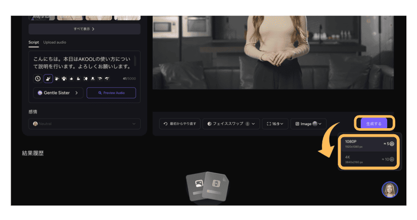 AKOOLのTalking Avatarは、テキストを入力するだけでAIアバターが話す動画を生成できる機能です。