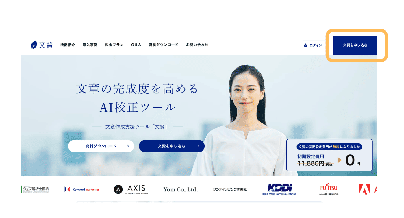 - STEP.1文賢にアクセスし【文賢を申し込む】をクリックします。