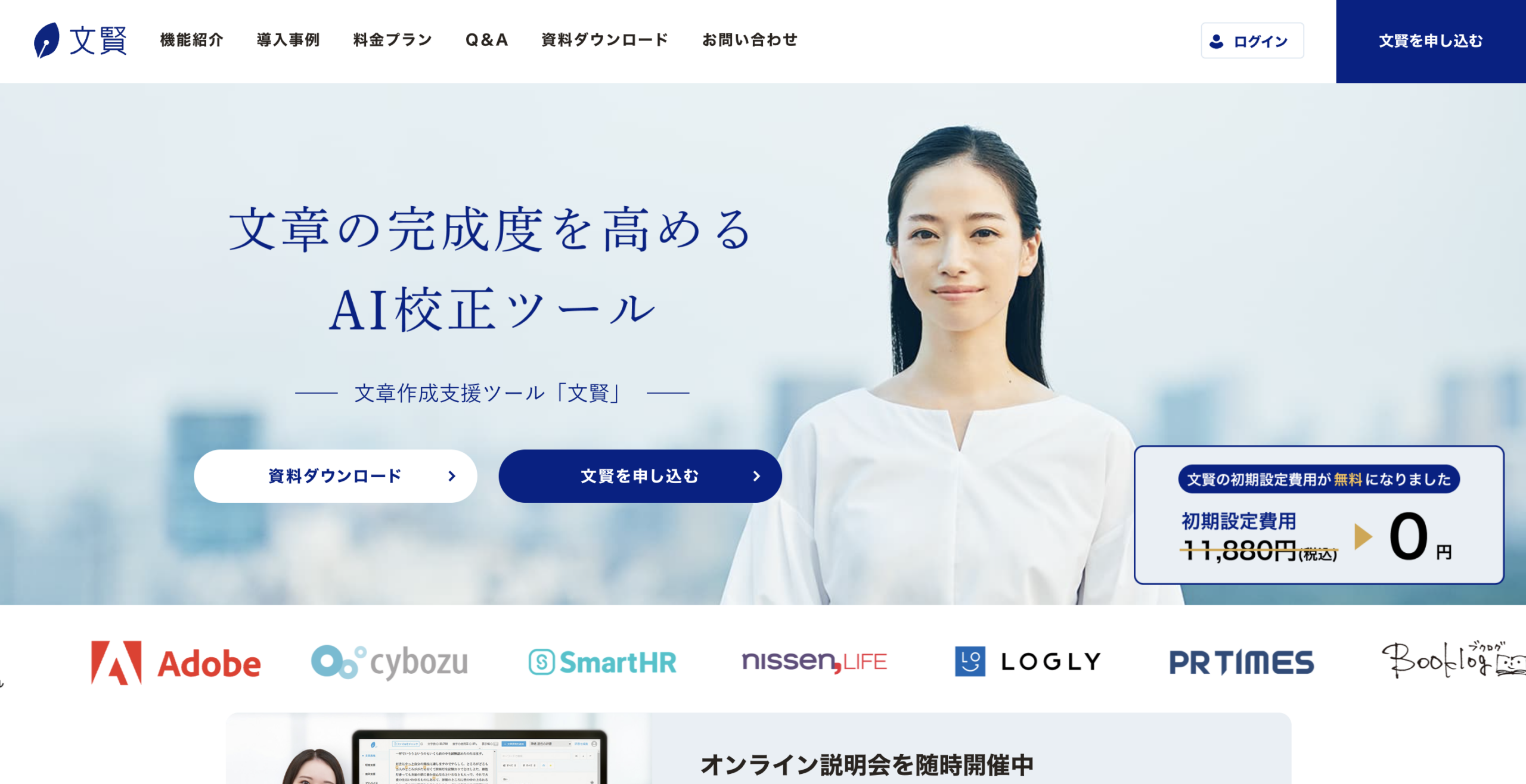 文賢は、株式会社ウェブライダーが提供するAI搭載の文章校正・推敲支援ツールです。