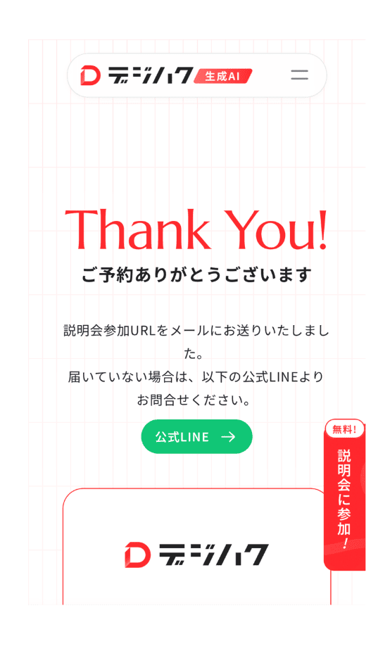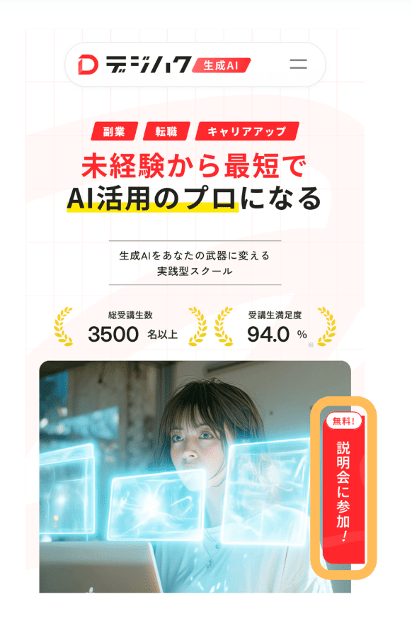 - STEP.1デジハクのサイトにアクセスし、【説明会に参加】をタップします。