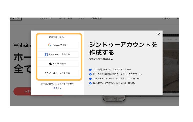 Jimdoの登録方法について