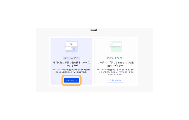 Jimdoには「AIビルダー」と「クリエイター」という2つの作成方法がありますが、一度選択すると後から切り替えることができません。