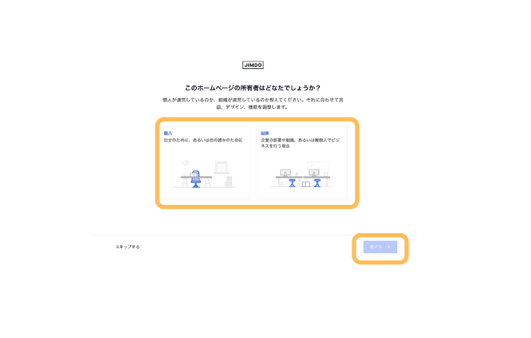 - STEP.4所有者は個人か法人かを選択し【続ける】をクリックします。