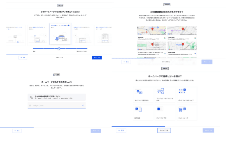 JimdoのAIビルダーは、いくつかの質問に答えるだけで自動的にホームページを作成してくれる機能です。
