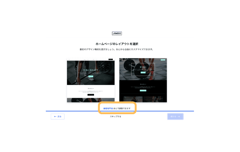 - STEP.6レイアウトについても【お任せするとあとで調整できます】を選択しておくと後から融通が効きます。