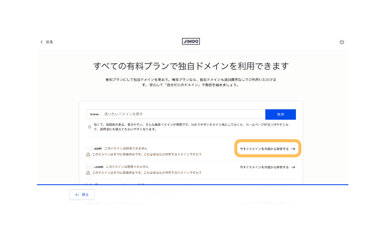 Jimdoの有料プランでは、独自ドメインを取得してプロフェッショナルなURLでサイトを運営できます。