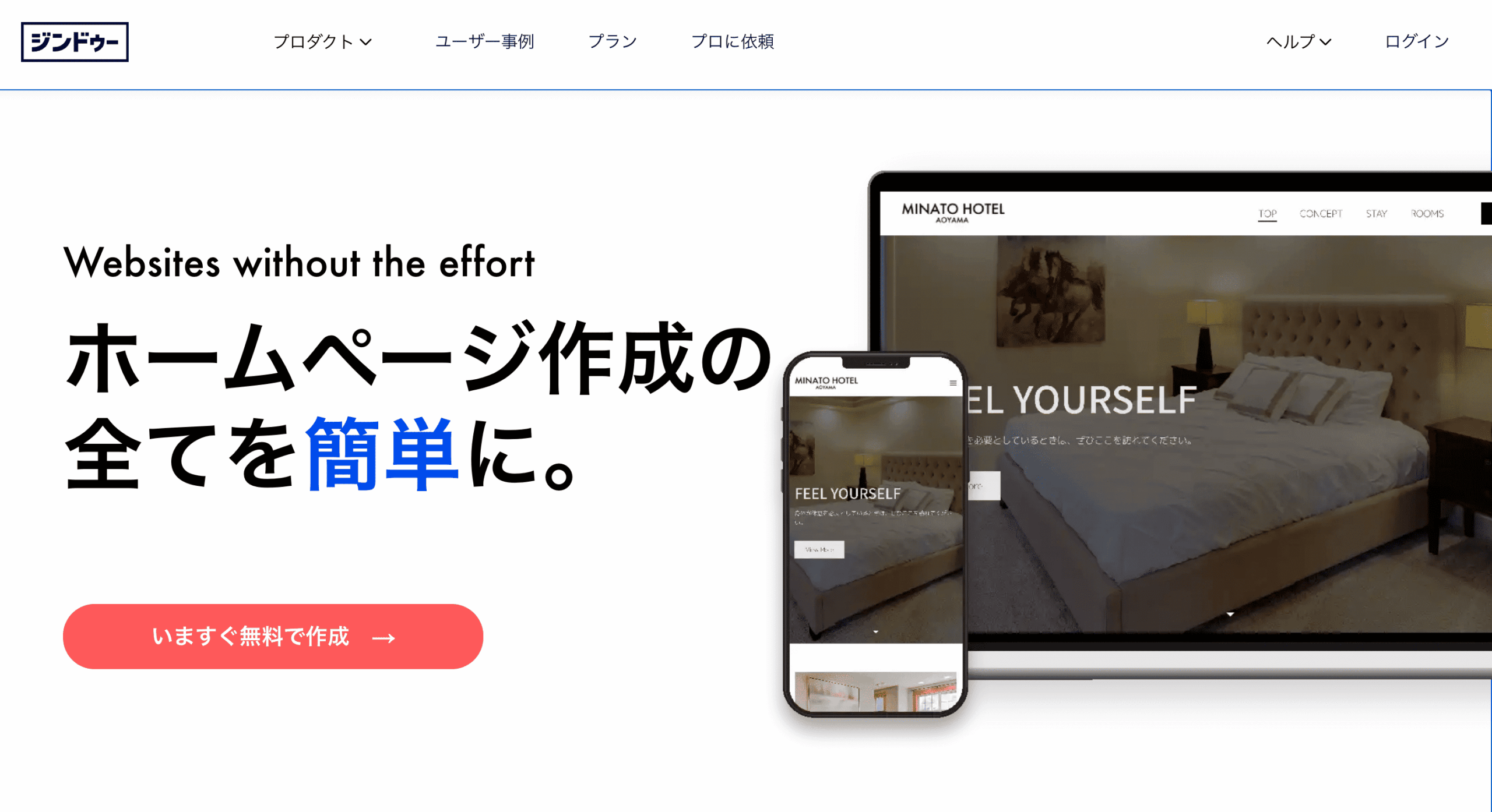 - STEP.1Jimdoの公式サイトにアクセスし【いますぐ無料で作成】をクリックします。