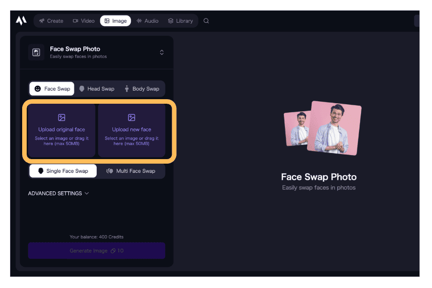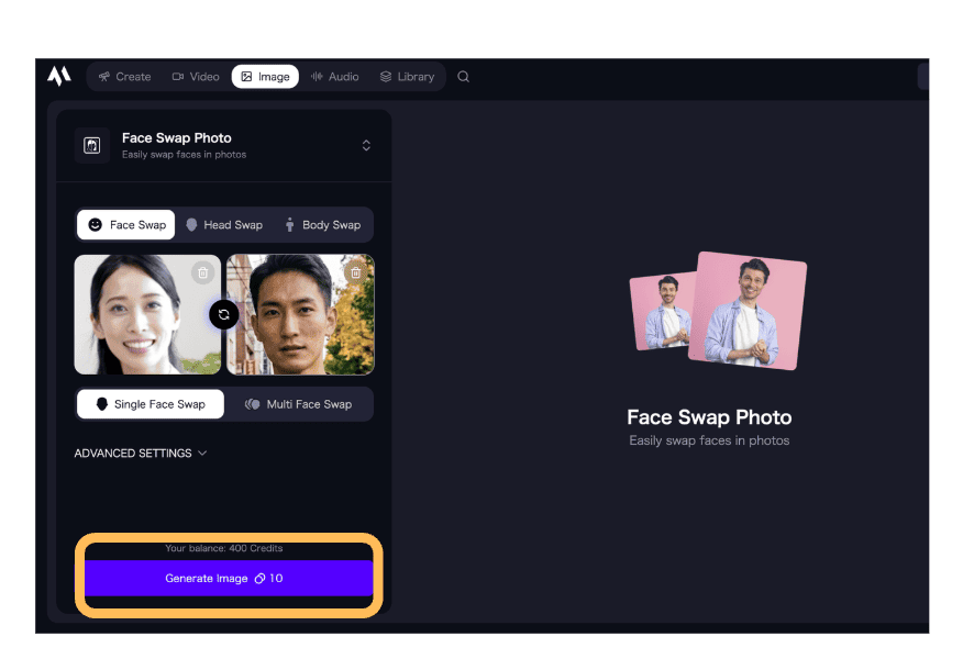 Magic Hourのメイン機能のひとつが、フェイススワップ(顔交換)です。