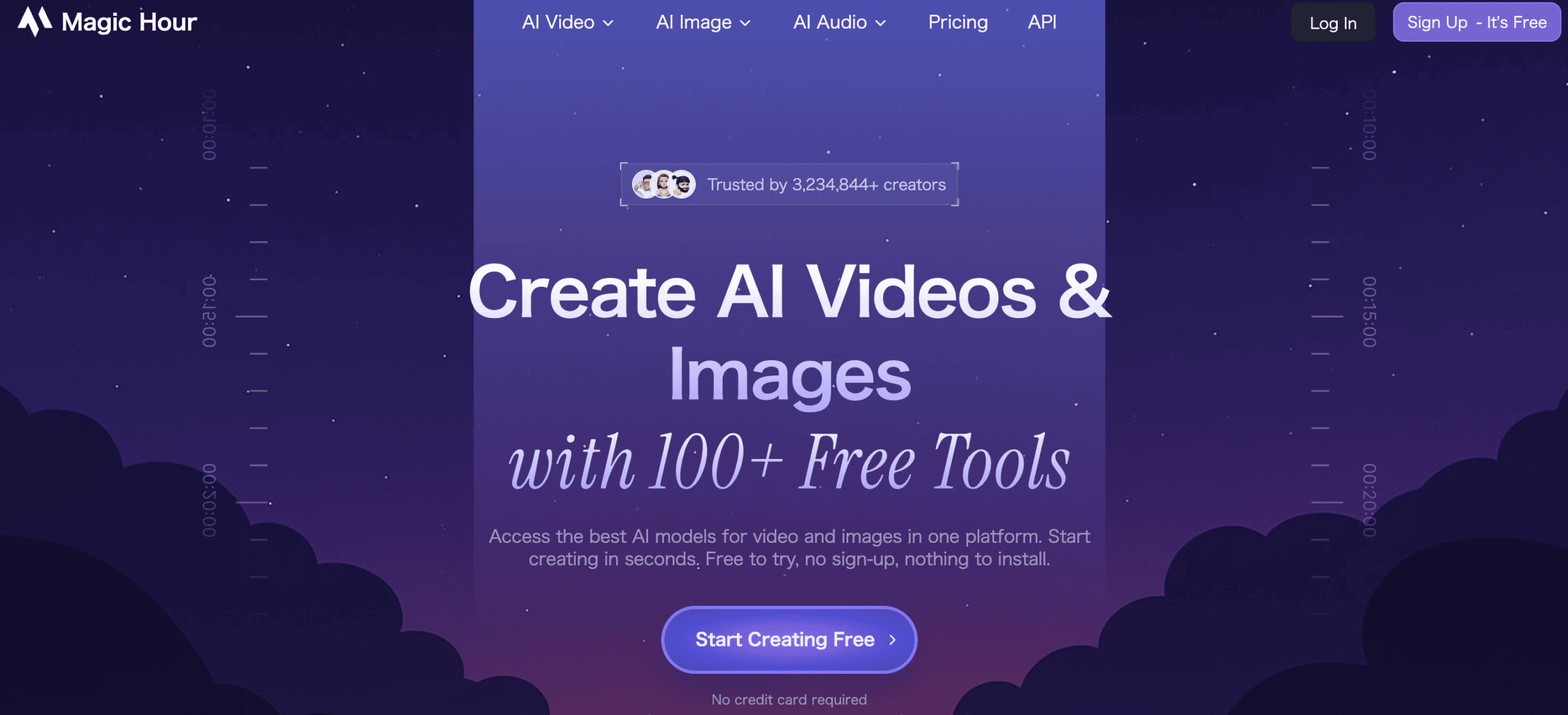 Magic Hour(マジックアワー)は、フェイススワップや動画生成など100以上のAI機能をブラウザだけで使えるオールインワンツールです。