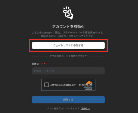 招待コードはないので、ここでは、ウェイトリストに「参加する」をクリックします。