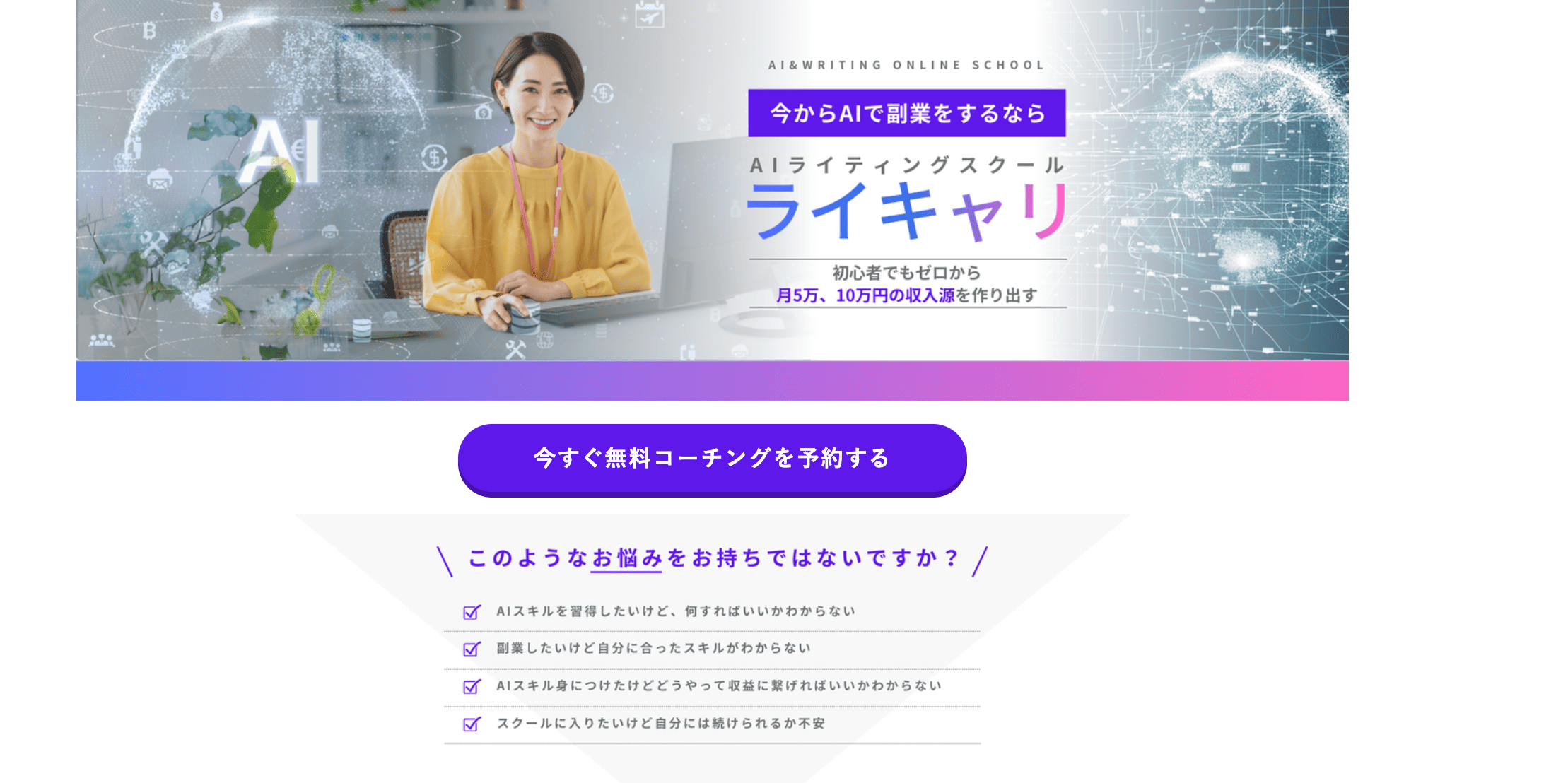 今回は、AIライティングに特化したキャリア支援スクール「ライキャリ」について詳しく解説します。