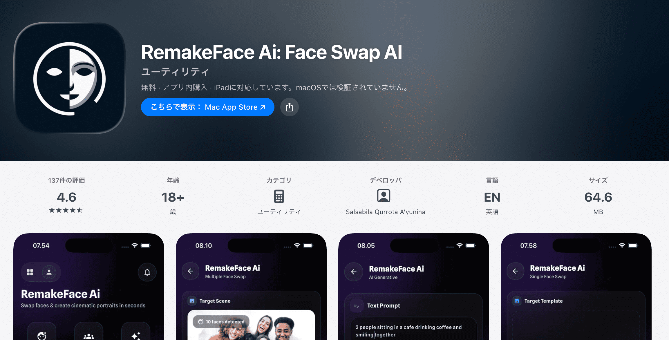 運営はインドネシアのSarana Creative Studioで、以前提供されていた「RemakeMe AI」がより強力な機能に刷新され、現在の「RemakeFace」として統合リニューアルされています。
