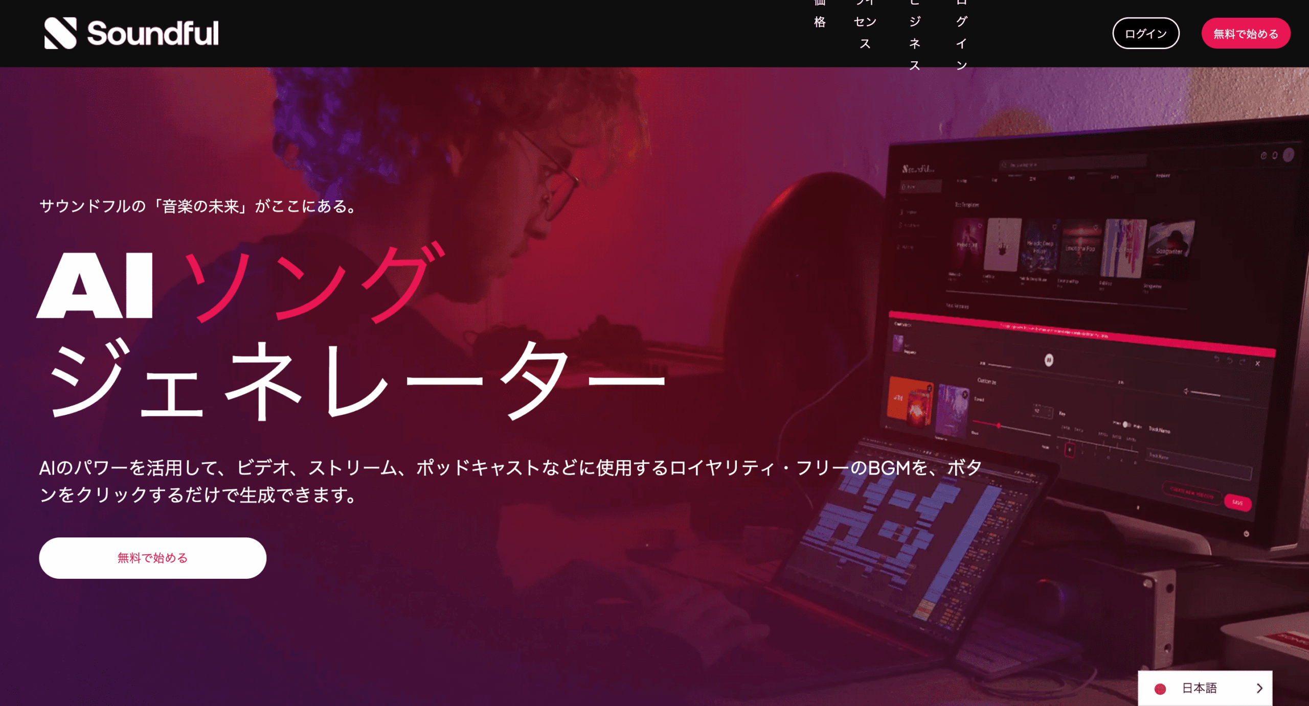 Soundfulは最先端のAI技術を使って、自動的にオリジナル楽曲を生成できます。